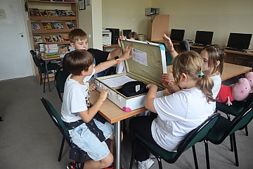 Dziś z Podróżnej Walizki czytelniczej zdeponowanej w naszej bibliotece szkolnej wyjęliśmy kopertę z zadaniem nr 3. Były tam emotikony ułożone w rebusy. Naszym zadaniem było odgadnąć zaszyfrowane w nich tytuły książek. Kilka udało nam się trafnie odczytać, a do reszty przedstawiliśmy swoje propozycje. To zadanie pobudziło naszą wyobraźnię i okazało się, że jesteśmy niezwykle kreatywni! Jak zwykle, doskonale się przy tym bawiliśmy.